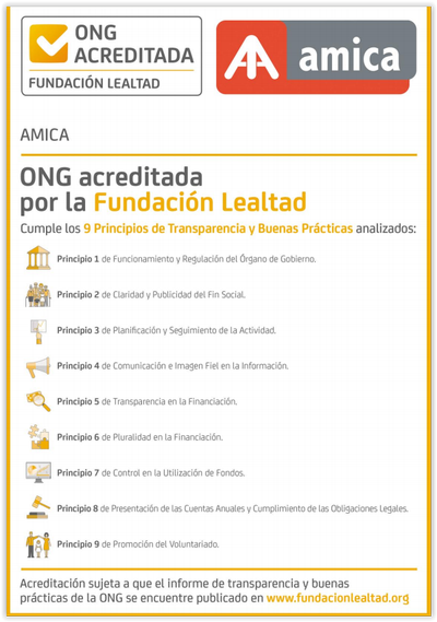 Asimismo, como explica la responsable de la organización, el distintivo supone que las personas que colaboran con AMICA lo puedan hacer con confianza. “El Sello ONG Acreditada es un aval de nuestro buen hacer, es una forma de mostrar nuestra transparencia y buenas prácticas, respaldadas y confirmadas por una organización referente en el sector en España, como es la Fundación Lealtad”, añade.