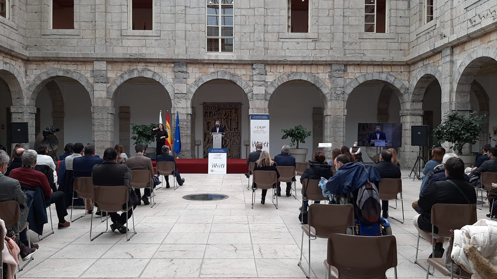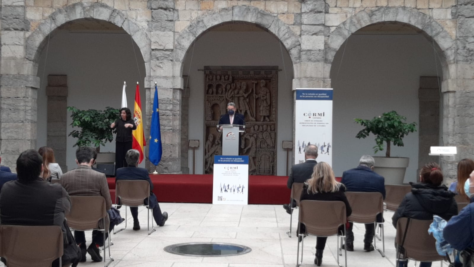 Hoy, día 3 de diciembre, conmemoramos el Día Internacional y Europeo de las Personas con Discapacidad con la realización con un acto en el Patio Central del Parlamento de Cantabria a las 11:30 horas, que además, ha sido retransmitido en directo a través de la web del Parlamento de Cantabria y por sus redes sociales.