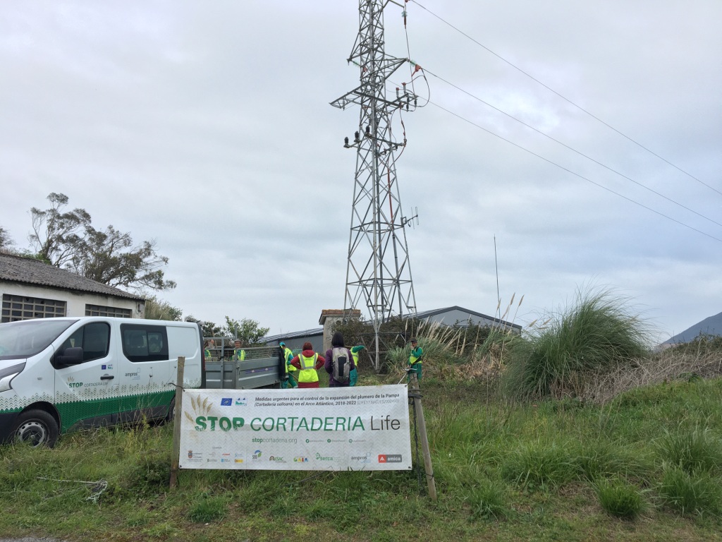 Además de los trabajos en espacios naturales del litoral de Cantabria, entre los que se encuentran los parques naturales de las Dunas de Liencres u Oyambre, LIFE Stop Cortaderia trabaja en la eliminación del plumero en el área de expansión. Así, la siguiente parada tuvo lugar en Borleña, en el municipio de Corvera de Toranzo. Donde la cuadrilla de Asociación Amica se encuentra eliminando una mancha de plumero disperso junto al Parque de Borleña en la ribera del Pas.