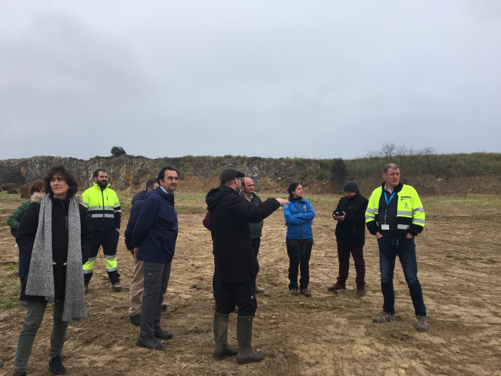 La salida de campo finalizó con la visita a la Cantera de Solvay en Cuchía, acompañados por su Director General, Jorge Oliveira, y la Teniente Alcaldesa del Ayuntamiento de Miengo, Sara Gómez, y Maite Vélez, concejala del Ayuntamiento. Se recorrieron las más d e20 hectáreas en las que se controla el plumero con el apoyo de rebaños locales de burros y caballos. Además se visitaron las parcelas de monitoreo en las que se realizarán ensayos científicos de distintas técnicas para controlar la proliferación de plumero; y las nuevas zonas húmedas que se están creando en la antigua cantera, con el fin de que la naturaleza recobre el uso del espacio.