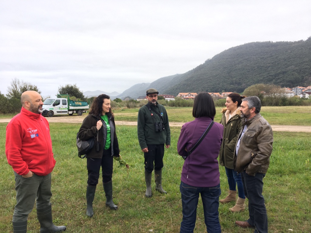 La siguiente parada, también en el interior del Parque Natural de las Marismas de Santoña, Victoria y Joyel tuvo lugar en el municipio de Noja, acompañados por su Concejal de Medio Ambiente, Javier Martín. Además de ver los trabajos que desarrolla Serca en las dunas de Helgueras, se observó el resultado de la eliminación del plumero en la Marisma Victoria desde la torre de observación y una de las parcelas del Brusco en las que se a través de un acuerdo de custodia del territorio se ha transformado una parcela abandonada invadida por plumero en un pastizal, en el que próximamente pacerá un rebaño de oveja.