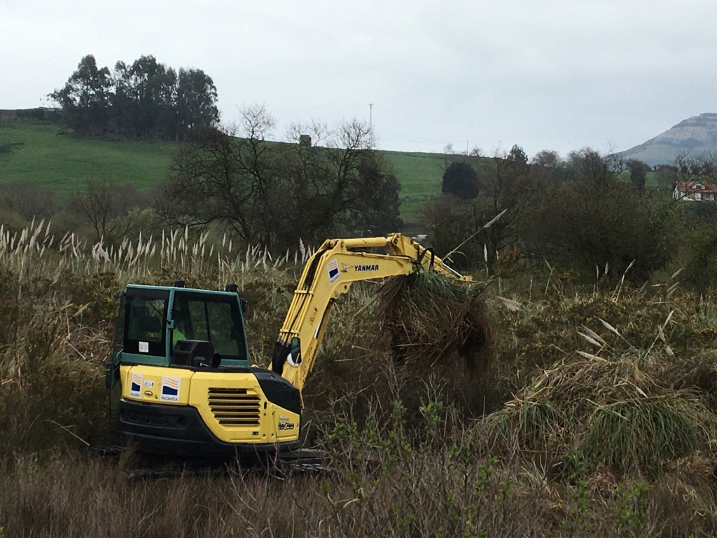Seguidamente, se visitaron los trabajos realizados por la cuadrilla de Ampros y la maquinaria que apoya al proyecto en los diques y marismas de Argoños, donde carrizal, juncal y pastizal se librarán de la presencia de plumero.